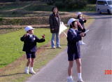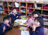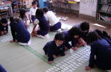 | 冬休みに作った凧を持ち寄って,「新春たこあげ大会」を実施しました。子どもたちは,大はりきり。凧糸を100メートルもつないで来た子。お父さんと奴凧を作った子。キャラクターをきれいに描いた子。それぞれに,工夫が見られました。 三人の保護者の方も見に来られました。 「わたし,凧揚げするのは初めてです。」 と言ってマイ凧持参で参加されたのは,学級委員長さん。 「凧揚げって,男の子がするものと思っていました。」 と(笑)。 それで,どうしてどうして初めてにしては,よく揚がる凧でした。風を心配していたのですが,強すぎず弱すぎずのちょうど良い風が吹きました。子どもたちの凧は,風を受けてよくあがっていましたが,やっぱり風とのかけひきの仕方はなかなかむずかしそうでした。凧あげなんて,やっぱりあまり経験していないのですね。 そう言えば,近所で凧あげをする子どもの姿は,ほとんど見なくなりました。電線が張り巡らされていない広い場所を探すのが一苦労ではありますが。 熱中する子どもたちの姿に,やっぱりこういう遊びの体験は必要だなと感じました。 1/12の生活日記より たこたこあ〜がれ ふ・ゆ 今日,たこ上げ大会がありました。父が,よくとぶように,かみじゃないのにしてくれたけど,よくとびませんでした。 父と母が来て,父がとばしてくれるとよくとびました。わたしは,父から, 「とばすのがへただよ。」 と言われて,少しざんねんでした。 家でとばしていなかったので,とぶかしんぱいだったけど,とばしかたがへただけで,ちゃんととびました。みえこちゃんやかっちゃんのがよくとんでいました。たこをとばすのはとってもむずかしかったです。 おわってから,みんなで,「よくとんだでしょう」と「きれいにできたでしょう」と「おもしろかったでしょう」をきめました。わたしは,「きれいにできたでしょう」だけ,わたしのに入れました。そしたら,わたしのが一番多くて,とってもうれしかったです。 またみんなで,たこあげ大会をしたいです。 ※たのしくできましたね。みんなで遊ぶと,いろいろ学べます。 たこあげ か・り たこあげたいかいをしました。ぼくは,さいしょはしっぱいしました。りゅうじくんとみえこちゃんのはたかくとんでいました。 ぼくは,たくさん糸をはずしました。そしたら,とびました。それで,しょうをとりました。 たこあげ大会のしょうを家に持って帰った。それで,お母さんが,よくやったねと言いました。ぼくは,うれしいでした。 ※やりましたね。おめでとう。これからもいろいろなことにチャレンジしていきましょう。たこあげ大会 き・み 今日,たこあげ大会をしました。わたしのたこは,ちょっとあながあいていたから,もうとばないと思っていました。でも,少しとびました。みえこちゃんのが一番高くまでとんでいたと思ったんだけど,か・りょうがくんのが一番高くとんでいました。 わたしのたこと,か・りょうがくんのとくらべると,ぜんぜんわたしのたこはとんでいませんでした。なので,どうすれば高くとぶのでしょうか? ※ねえ,いろいろくふうして,けんきゅうしてみるといいね。楽しかったね。 |