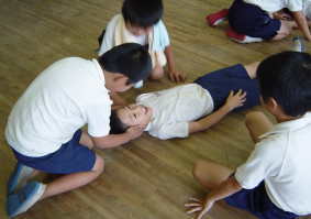 | 「いのちって,いったいどこにあるのでしょう?」 金曜日の総合・いのちの学習は,この質問から始めてみました。 子どもたちのほとんどが,迷わず,自分の心臓の辺りに手をあてながら, 「胸のちょっと左側。」 「ドッキン,ドッキンいって いるところ。」 と,答えてくれました。 「そうですかあ。では,腕や 足にはいのちはないのでし ょうか?」 「……。」 一瞬の沈黙の後, 「いいや,あるある。」 「からだ全部にいのちはある ー。」 「えっ,どうしてそう思うのですか?」 「だって,動くから。」 「血が流れているから。」 「成長するから。」 …「いのち,いのち」と言うのは簡単ですが,こうして考えさせてみると,それまで意識していなかったことが見えてくるのですね。 「そうだね。いのちってから だ全体にあるのですよね。」 続いて, 「では,みんなは,どんな時に『いのち』を感じますか? 『生きてる』って感じますか?」 と,投げかけました。すると, 「気持ちいいなあと思う時。」 「走った後,心臓がドキドキする時。」…続く… 「そうだね。いつもはなかな か感じないけれど,何かをした時にふと『いのち』を感じることがあるね。じゃ あ,今日は,しっかりと『いのち』を感じる勉強をして みよう。」 ※※※ こうして,自分の手でからだをさわり,感触や温もりを確かめさせた後,友だちと一緒に「いのちの音を聞いてみよう」の活動に入りました。 友だちのからだに耳をあて,音を聞くという活動は,高学年になってからはなかなかできないこと。以前,二年生を担任した時には,男女を問わずにできたのですが,今回三年生では,男女に,はっきりと分かれてしまいました。まあ,これは成長段階の違いで,自然なことですがね。 子どもたちは,体をくっつけ,楽しくいのちの音を聞きあってくれました。それでは,感想をご紹介することにします。 いのちの学習 YM 体のいろんな音をきいてみると,耳はどどどどどどどど,というおとがきこえてきました。おなかは,きこえませんでした。せなかもきこえま せんでした。頭の音もきいてみたら,頭から声がきこえてびっくりしました。 体にも,しんどうがあるんだなあと思いました。 FM いのちは,体全体にあるのです。 のどの音で,水をのむと,ごろごろときこえました。おなかの音は,ぐるぐるみたいな音がきこえました。 耳に手をあてると,シーという音もきこえました。 むねは,ドキンドキンときこえました。 HT ぼくは,いのちはどこにあるかというと,はじめはむねにあると思いました。でも,体全体にあるとわかりました。次に,力やさんのうでの音をきいたら,なにもしませんでした。あきひとさんのおしりのおとをきいてもなにもしませんでした。ゆうやくんの水をのんでいる音をきいたら,どくんどくんしていました。 いのちはどこ TR いのちは,どこにあるかで,さいしょはむねだと思っていたけど,ぜんたいにあることがわかりました。なつみちゃんの水をのんでいるところをきいたのです。いっぱいのむと,大きい音だけど,ちょっとのむと小さい音でした。 おなかの音をきくと,どっきんどっきんとなっていました。 音 TY のどの音をきくと,力やさんは,ぼっくんぼっくんという音が聞こえました。まさしさんのおしりの音をきくと,ブルルブルブリブリとしました。 いのちは,体全体にありました。 あと,つばささんのおなかをきくと,ぐーぐーやドキドキブルーンと音がきこえました。 いのち KR 今日,いのちのべん協議会して,いのちは全体のところにあることがわかりました。 そのあと,心ぞうや,おなかの音を聞きました。おなかの音でどれぐらいごはんを食べたかなと思ったからです。 まあ,だいたい聞こえてきました。心ぞうは,みんな元気でした。 いのちの学習 HH いのちの学習で,いのちはどこにあるかわかりました。 まりちゃんの,水をのんでいる音は,どっくんどっくんときこえました。 あたまは,話した声があたまからきこえました。 いのち MAきょう,いのちのおべんきょうをして,すごいなあと思ったこともあります。 耳をふさぐと,どきんどきんという音がするといっていました。 体からは,いろんな音がするんだなあと思いました。 きいた FM リッキーの心は,どんどんどんの音がしました。リッキーのはらやうでなどをききました。 はじめて,ぼくはすごいなーと思いました。 ほかの人のもききたい TA れなちゃんが,水をのんだら, 「グーッ。」 といいました。 わたしがのんだら, 「グン。」 といいました。 わたしの心ぞうは,ドキドキいいます。 れなちゃんの足の音は,ぶるぶるしました。 いのち KA わたしは,いのちは,むねと思っていたけど,いのちのべんきょうをして,からだぜんたいだとわかりました。 べんきょうしたあとに,友だちの心ぞうの音や,友だちが水をのんでいるときの音をきいてみました。 ぎゅる〜とか,ドッキンドッキンとか,ごぐごくとかいろいろな音がありました。 わたしは,あんまりきいたことがなかったから,とってもおもしろかったです。 足とか,音はしないと思っ