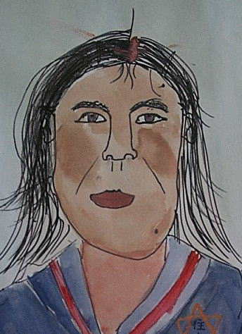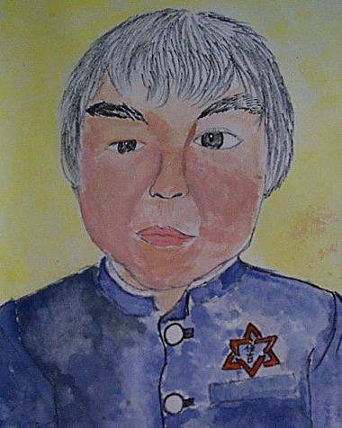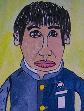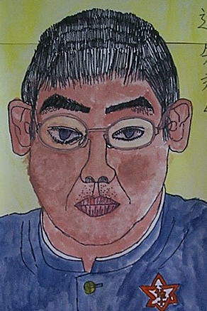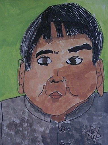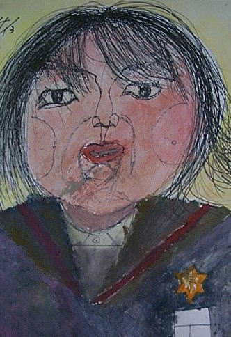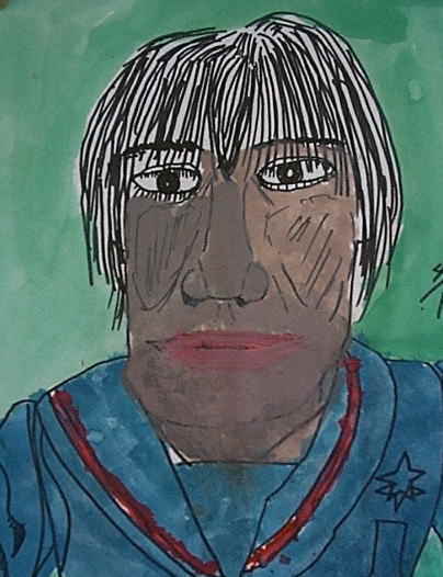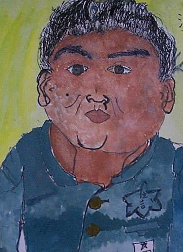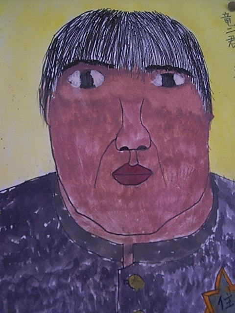 友だちの顔をじっと見つめて描きました。色は、赤・青・黄・白で作りました。